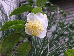 毎年初秋に珠のような可憐でこぶりな花を目一杯咲かせてくれる。しかし、どんなツバキにもましてその花弁は薄く、はかない。初秋の陽射しはまだまだ強く、可憐なチャの花の命は哀しいほど短い。
