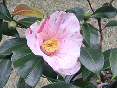 ぼつぼつと早咲きの花が開いてきている。ツバキは花が美しいのはもちろんだが、花が開く前の脹らんだツボミの美しさも見逃せない。
