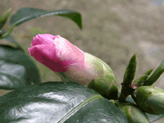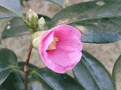 下の写真は開花する1日前のものです。ツバキはこのツボミもいいでしょ。 (文:03/12/20、写真:03/12/13・15)