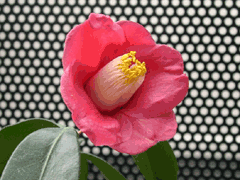 野にあるときとは土壌の性質の違いのせいか、ちょっと色が違う。チョコレートのような変わった色だったけど、家で花開いた「弥十郎」は深紅。いかにも野生種らしい力強い姿だ。ちゅうか、このままなら典型的なヤブツバキ。