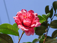 ところが、いろんなものを調べても、この「星飛龍」という名前が出てこない。おかしいなぁと思い、買ってきた苗をよく見ると、どうやらサザンカのようだ。サザンカの欄を調べるとちゃんと載っていた。