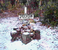 ロックガーデンには向かわず、芦屋川の右手(駅から見上げて)を進み、ほんの少しで柿谷入口。ここからは山道。ガレ場のような道を進むとやがて落ち葉を敷いたような道に。途中「左ゴロゴロ、右公園を経てゴロゴロ」の標識があり左へ。先週の苦楽園尾根に較べて、距離は少し長いが、この柿谷コースの方がずっと歩きやすい。木陰や北の斜面には昨日の雪がザラメ状に残っている。快晴、無風。今日は気温が10度くらいまで上がりそうだ。8:15にゴロゴロに到着。ここまで上がれば銀世界。昨日下界は雨だったけどこのあたりは雪だったんだな。ゴロゴロの三角点もうっすら雪化粧。