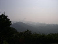 踊り場場の場所で振り返ると、南と西側にはいい展望が開けてる。今歩いてきた川沿いの道はもちろん、先週歩いた高取山や須磨アルプス、そして明石海峡大橋まで全部見渡せる。南側は神戸の街並み、ポートアイランドから紀伊半島まで。渡る風も気持ちいい。でも、体中滝のような汗。