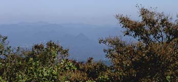 ロープが張ってある岩場を過ぎるとロックガーデンの案内板へ到着。思わずここで一息入れてしまう。歩き始めて30分ちょっとしかたってないのに。ザックを降ろして、水を補給。今まで歩いてきた道筋が木々の間に見える。芦屋の街を通り過ぎて海。そして、遠く紀伊半島まで一望できる。ほんとにいい天気。
