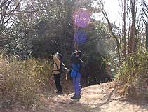 途中でコースは「パノラマコース」と「せせらぎコース」に別れる。今回はパノラマコースに進む。しばらくは割と急な登りだが距離はしれている、やがて振り返ると眼下には甲山を始め、西宮から宝塚、伊丹などの西阪神が広がっている。さすが「パノラマコース」やね。