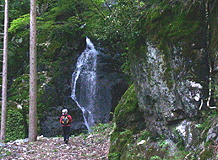 杉の植生の中のコースを数分歩くと「口滝」。なかなか立派な滝。
