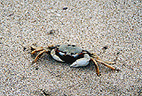 きれいなビーチ。波は荒いよ。東湾、大湾の二つのビーチを砂浜に足跡を残して横切る。こんな辺鄙なビーチでサーフィンをする酔狂な若者もいないかと思ったら、次の咸田湾では波と戯れる白人の若者二名発見!