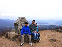一息ついて、あと500段を駆け上がる。別に急いでいたわけではないけど、珍しく「駆け上がりたい」気持ちだったのだ。この辺りは自然林になっていて気持ちいい。付近が山頂が近いことを知らせてくれると思ったら、いきなり山頂広場が目に飛び込んできた。