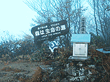 コースそのものはしっかりしているものの、やや荒れ気味で歩きにくいし、それでなくとも角度が急なのでけっこうつらい。5分おきほどに汗をぬぐうために一息入れてしまう。ガスで周囲の景色が見えないから、気の紛らわしようもないことが、ますます「しんどさ」に拍車をかける。いつの間にかタオルは汗でびっしょり。
