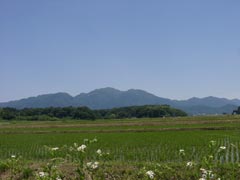 穏やかな山容を見せる雨乞岳 帰路、日野町から見上げる |