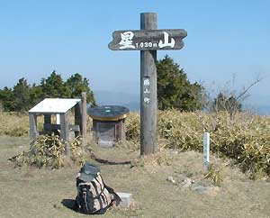 それにしてもいい天気! すぐに前山のピークへ到着。あいそもへったくれもなくて、なんとなくここかなとわかる程度。ここで一息入れましょう。どっかりと腰を下ろす。ここから見上げる星山はまだ少し遠いけれど、角度もそんなに急ではなさそうだし難しいこともなさそう。
